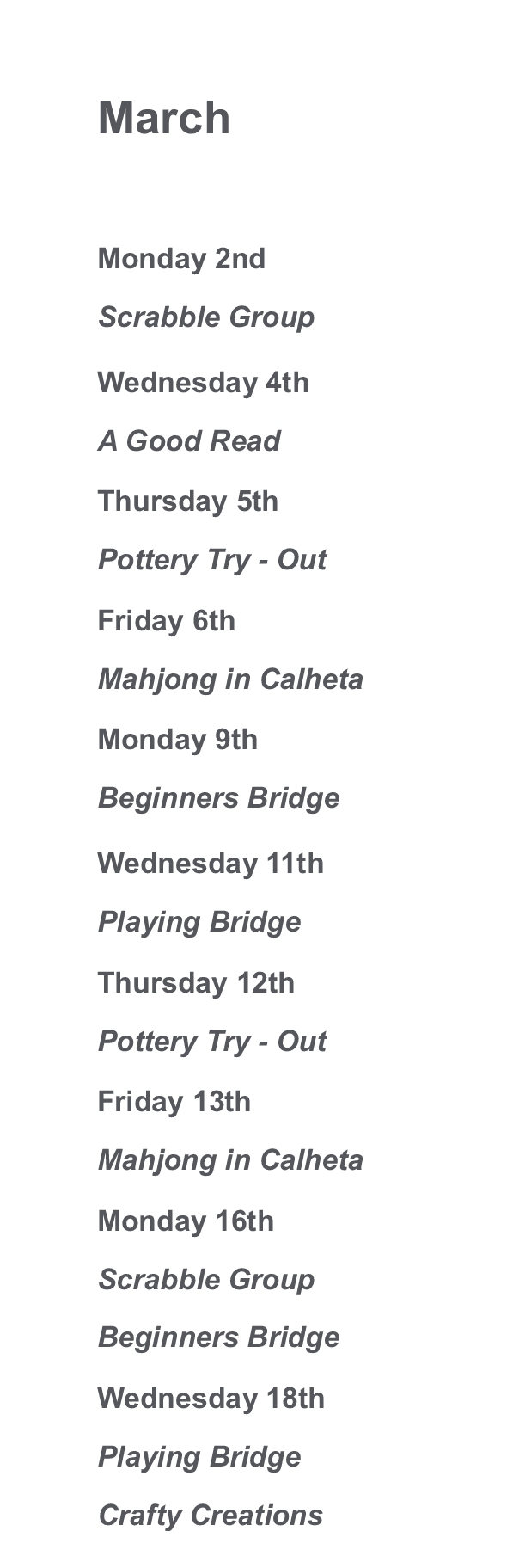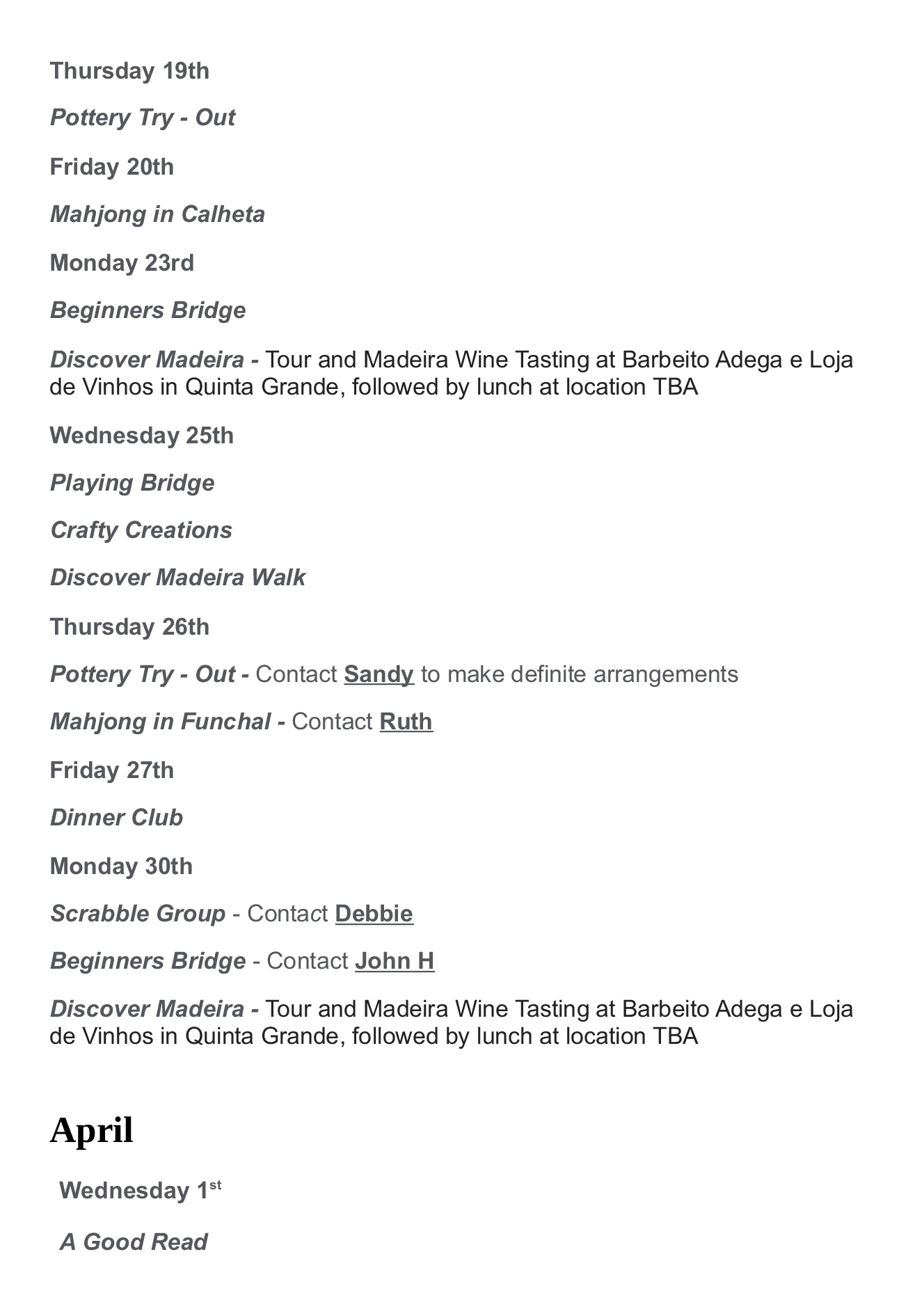 Find out what’s going on in March and April with M3A.