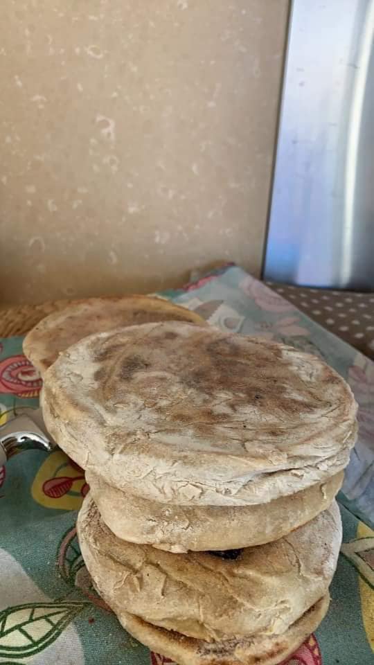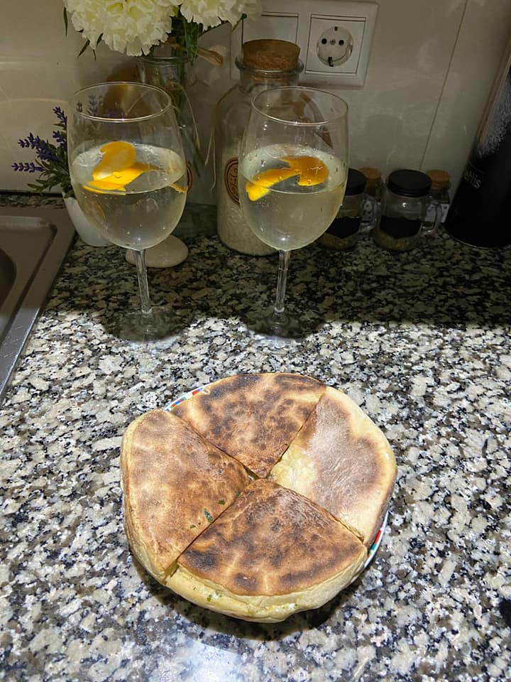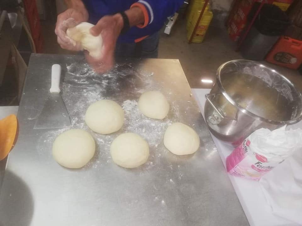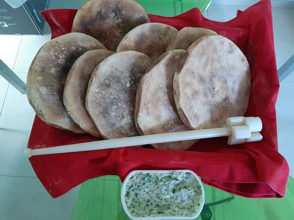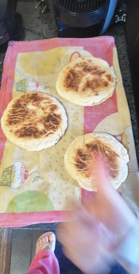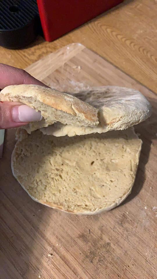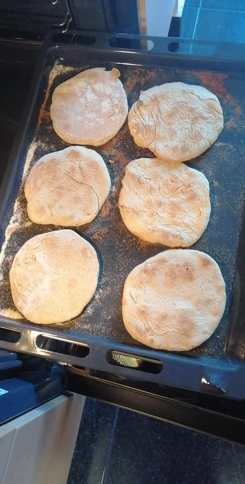 EN-If someone wants to do it at the same time as Luis by video call, they must have the following ingredients at hand; 1 liter cold water, 2kg Flour, 200g sweet potatoes (roasted and skin removed), 50g salt, 50g dry powder yeast, a bowl or something like that. He used an electric plate to bake the Bread, you as an option have the frying pan or in the last case oven! Look in the gallery below to see how some people baked theirs. Note he only put 1 kg of flour in at first then added more as needed.