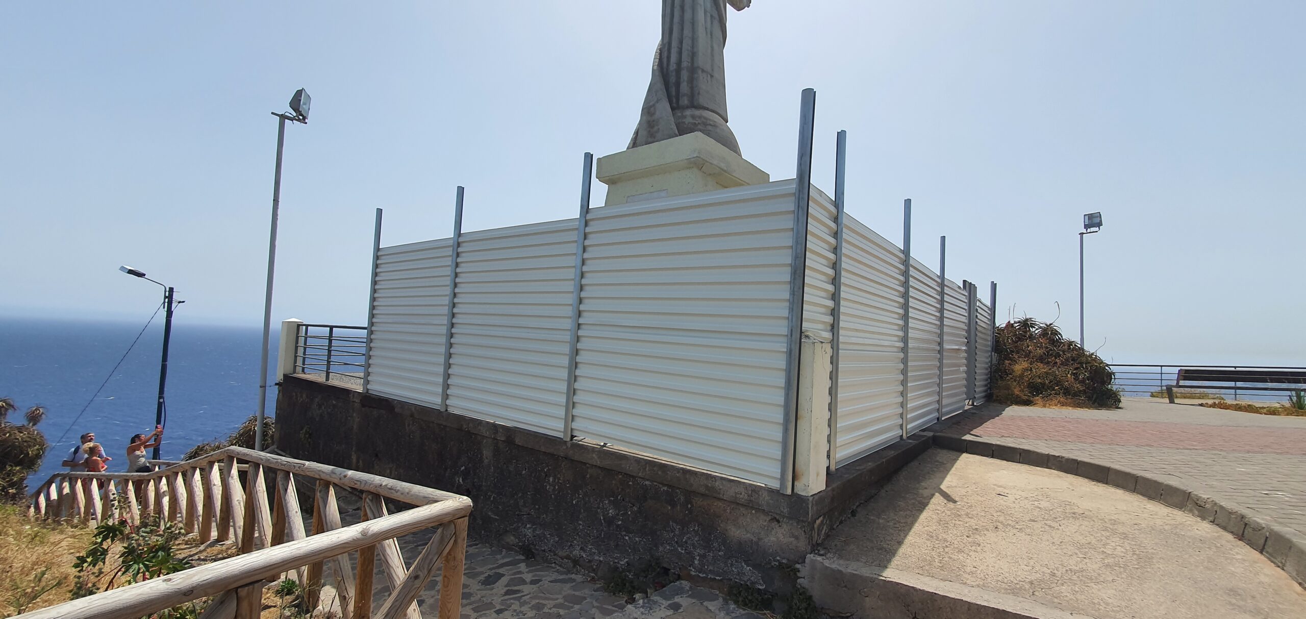 They have put a metal fence around the statue, I presume for repairs to the damage caused at the end of March when lightning hit the statue.