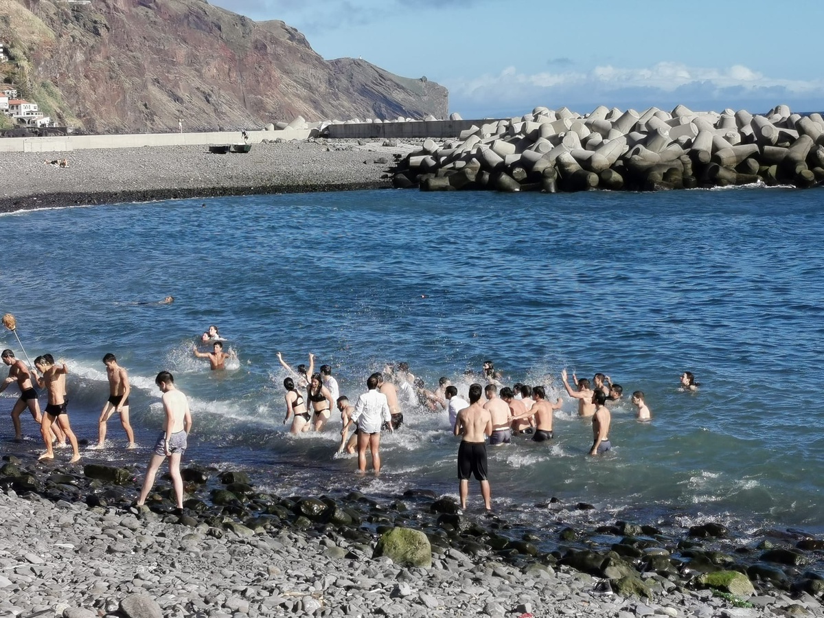 Hundreds of young Higher Education students in Madeira, namely from the University of Madeira, today made the practice and baptism in Funchal’s Praia Nova, as has been the habit in recent years, a tradition interrupted last year because of the covid-19 pandemic .