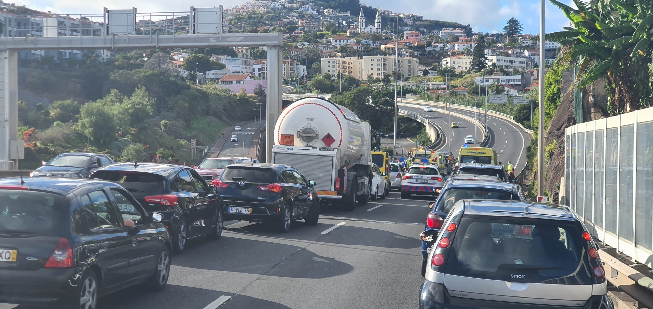 Accident blocks motorway between junctions 11-9 towards Câmara de LobosTobi Hughes·27th November 2021Madeira News An accident involving 2 cars has blocked the motorway just before junction 10 , causing long tailbacks. The motorway was blocked for almost an hour before breakdown and police arrived to see the situation. There were no injuries to report. Help & Share Click to share on Facebook (Opens in new window) Facebook Click to share on X (Opens in new window) X Click to share on Pinterest (Opens in new window) Pinterest Click to share on WhatsApp (Opens in new window) WhatsApp Click to email a link to a friend (Opens in new window) Email Click to share on Telegram (Opens in new window) Telegram Click to share on Tumblr (Opens in new window) Tumblr Click to share on LinkedIn (Opens in new window) LinkedIn Click to print (Opens in new window) Print Like this:Like Loading... Related