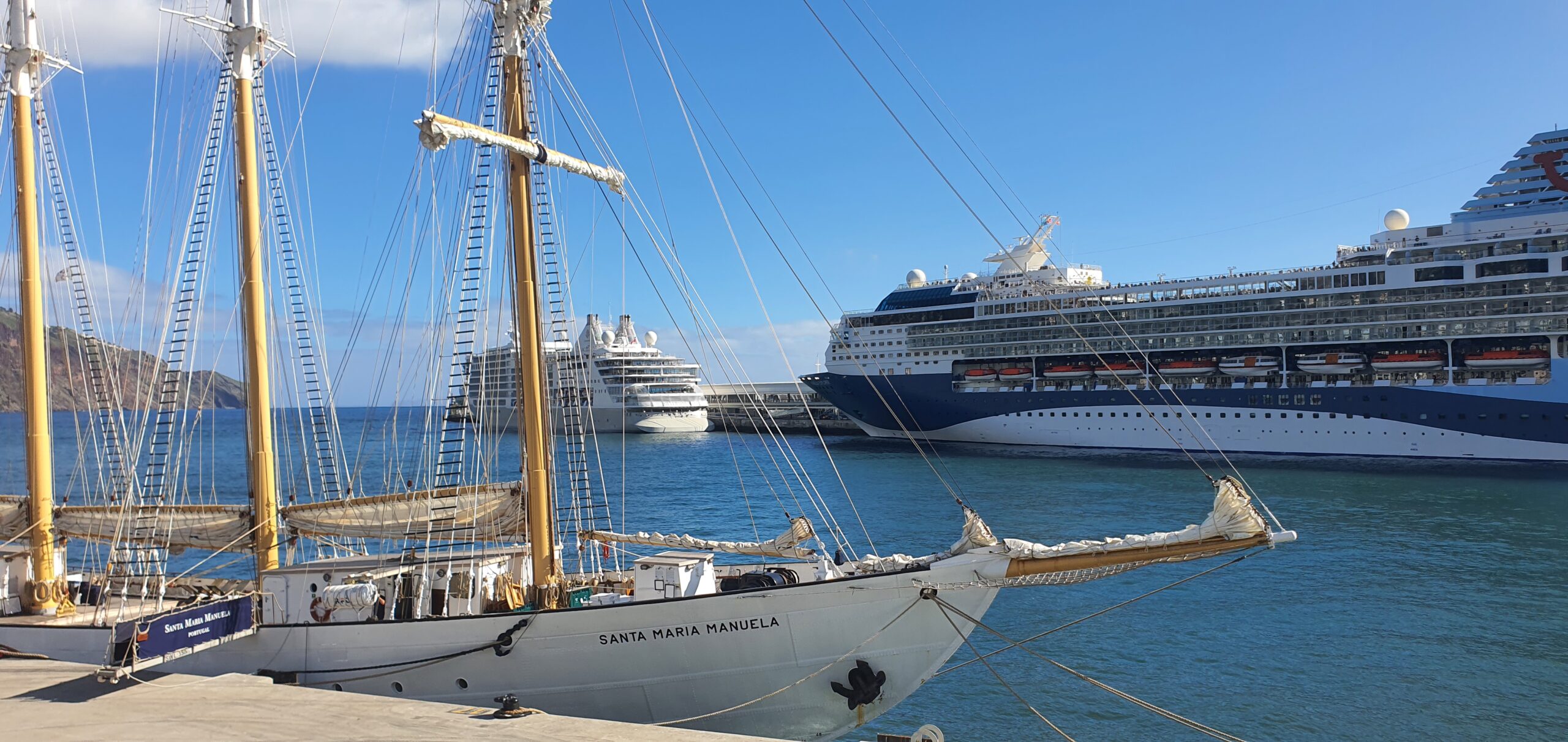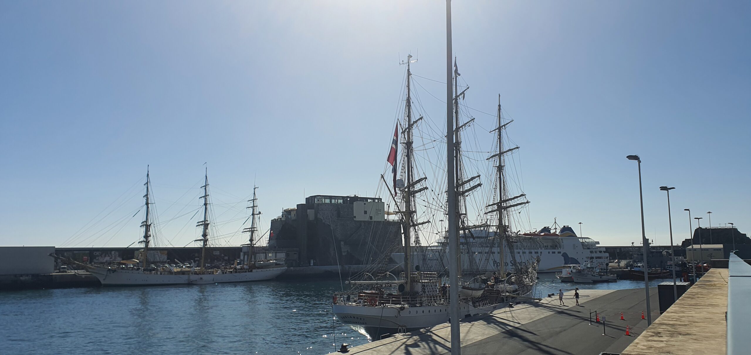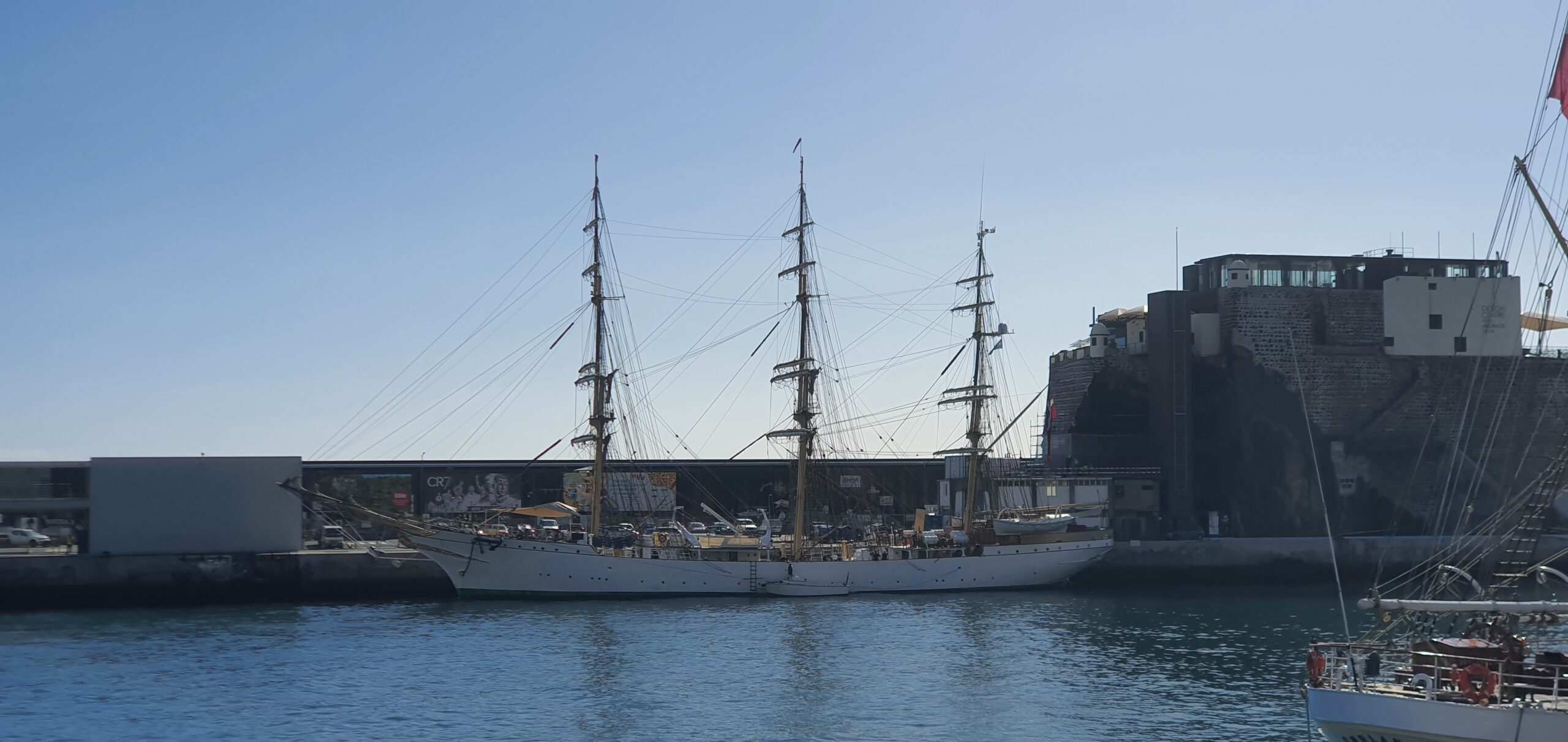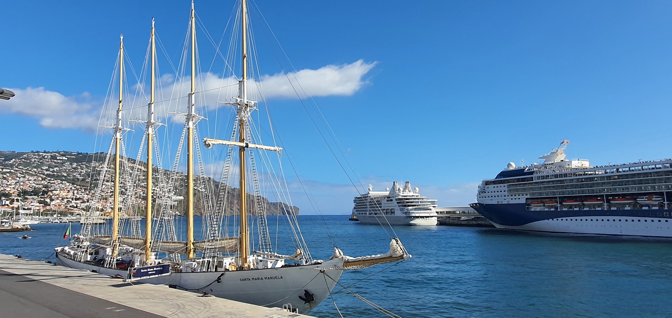 Yesterday there were three sailships in port.