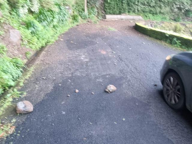 A dangerous situation in a signposted area prevents the passage of vehicles. But bus passengers are ‘obliged’ to pass on foot, as happened this Monday, on a day when small landslides and isolated stones closed again, car traffic in that high area of ​​the parish of São Roque do Faial, municipality of Santana.