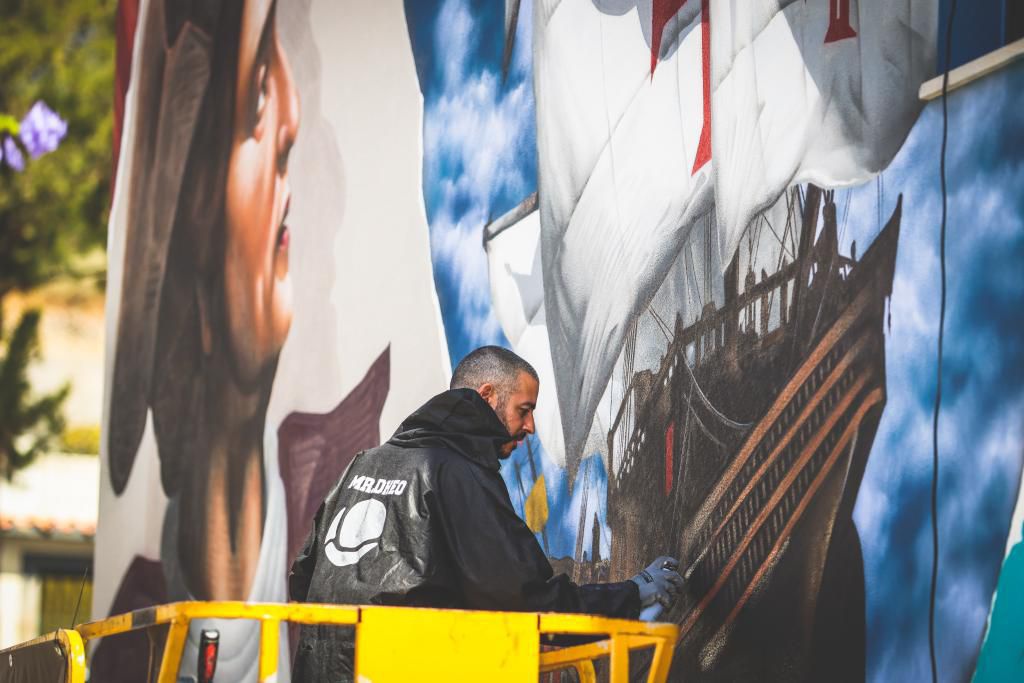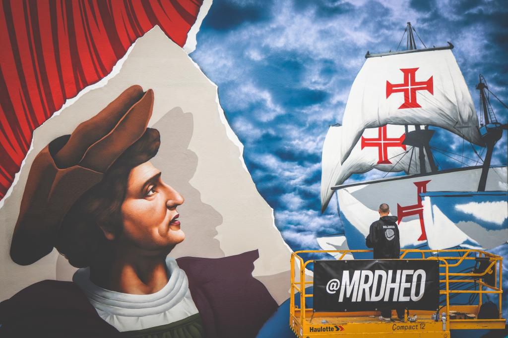 140 spray cans paint Christopher Columbus on a mural in Porto Santo