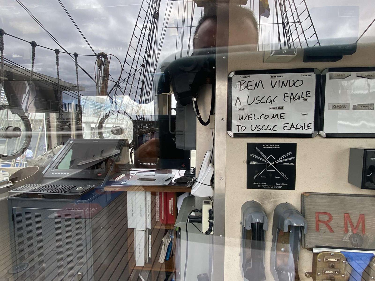 One of the curiosities of this long history is that on its ‘inaugural voyage’ (from May 30 to July 12, 1946) from Bremerhaven, in defeated Germany, to the port of New London, in Connecticut, where it has been its base since then, the ‘Eagle’ sailed over the port of Funchal, as evidenced by this plaque that marks the moment.