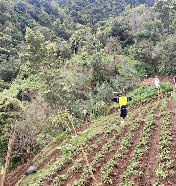 We stood there together, our little walking group leaning against the stone wall of the levada, looking out at the terraces, the ocean, and the quiet order of the fields.