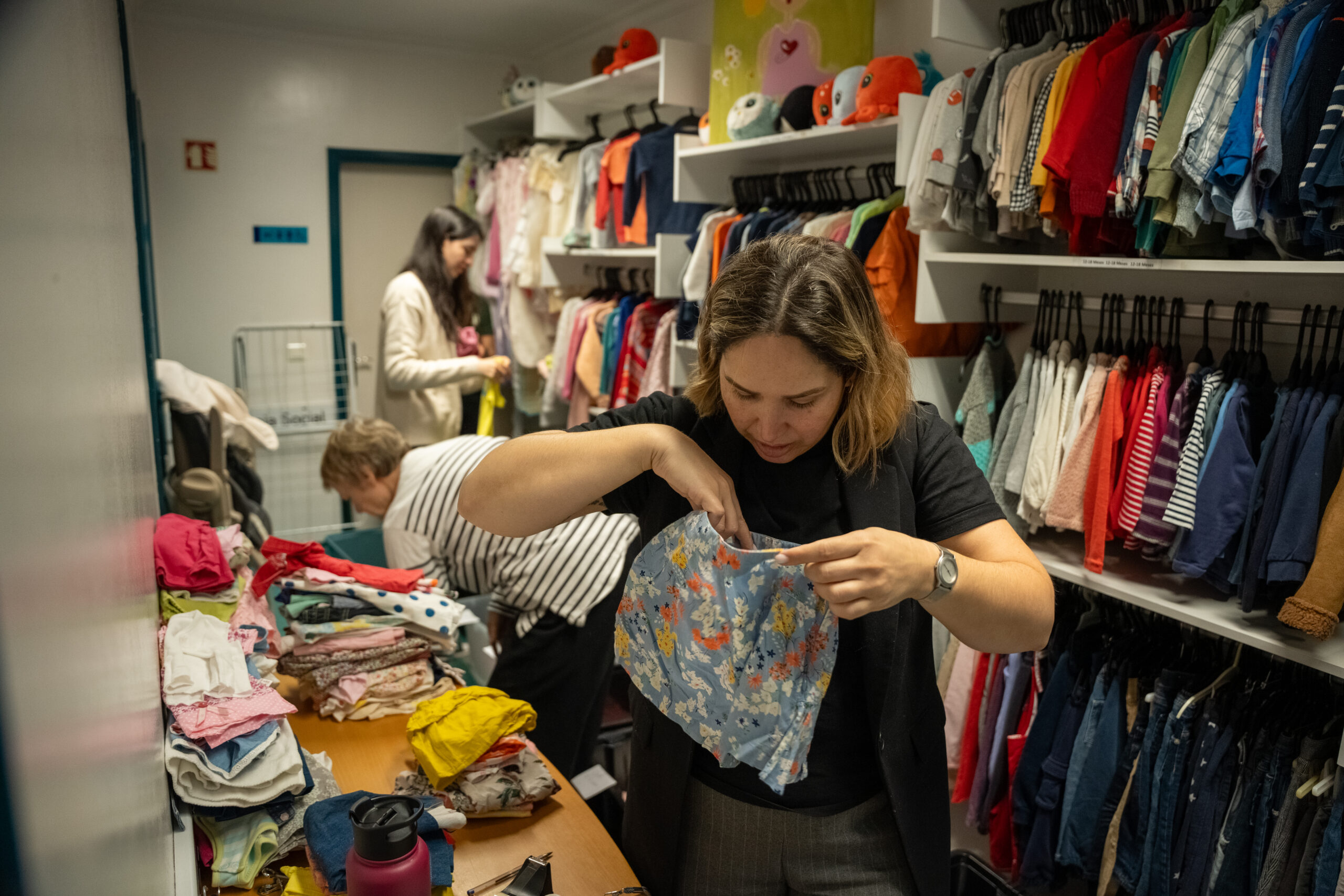 “It’s not just about organizing clothes. It’s about the community, the connection, practicing Portuguese, and seeing these mothers come in and quickly find what is needed for their little ones. There is nothing more rewarding than seeing everyone smile. We are so lucky to have this community.”